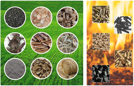 For making biomass pellets fuel at home, you can use almost any raw material you have, like sawdust, straw, leaves, alfalfa, stalk, sunflower husk, peanut shell, and so on.